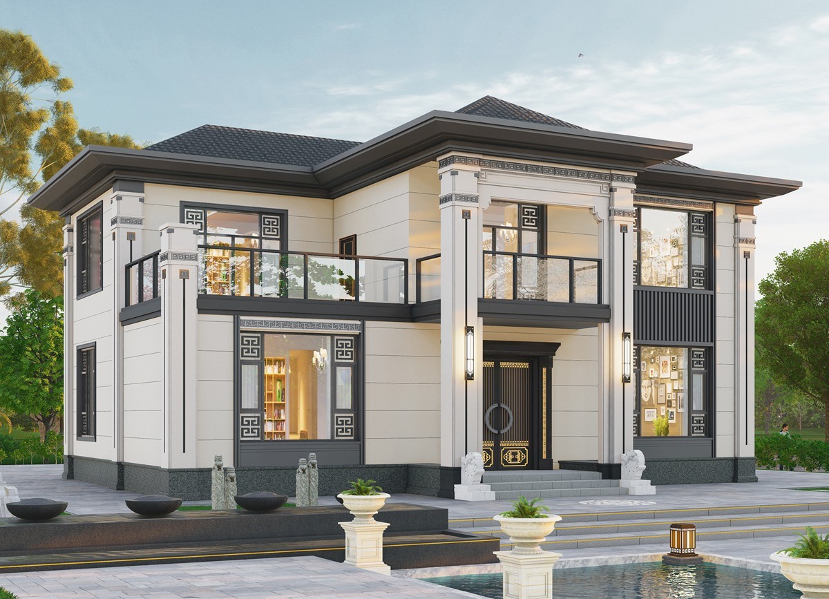 银川005 两层新中式(11.36x11.76米)-【易设计】
